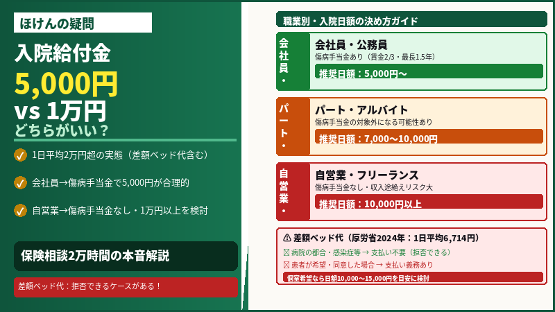 医療保険 医療保険の入院給付金は日額5000円と1万円どちらがいい?自分に合った金額の決め方を解説