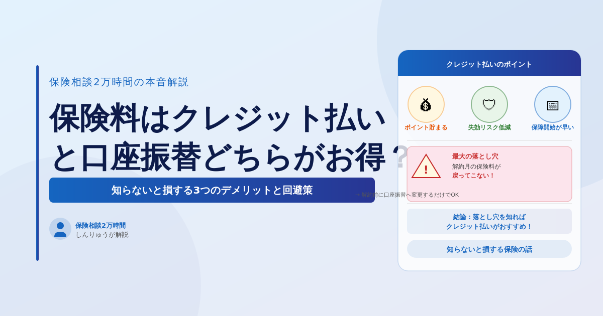 「保険料をクレジットカード払いに変えようか迷っている」「口座振替とどっちがお得なの?」