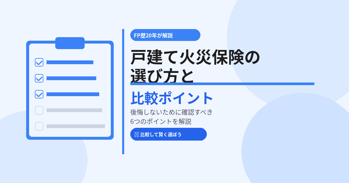 この記事では、FP歴20年のしんりゅうが、戸建てオーナーが火災保険を選ぶときに確認すべき6つのポイントを解説します。