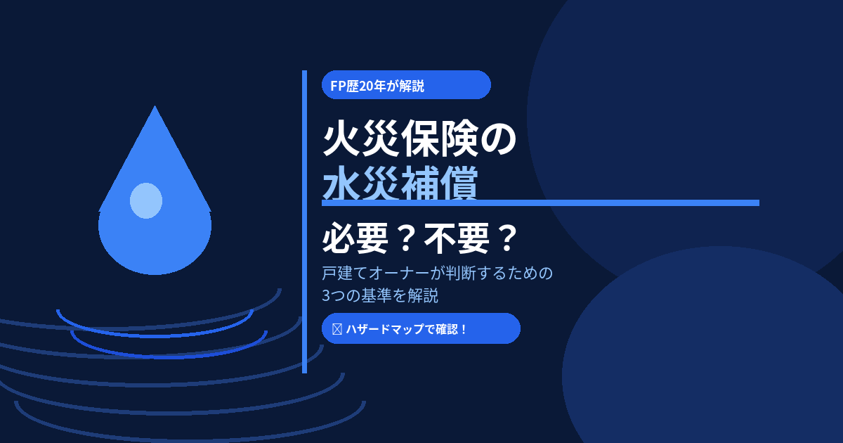 この記事では、FP歴20年のしんりゅうが、戸建てオーナーが水災補償の必要性を判断するための3つの基準と、賢い選び方を解説します。