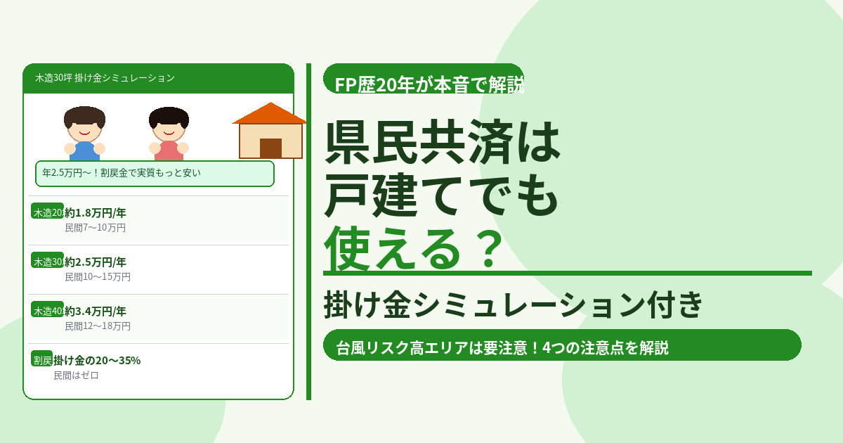 県民共済の火災保険は戸建てで使える?木造・30坪の掛け金シミュレーションと注意点をFPが解説