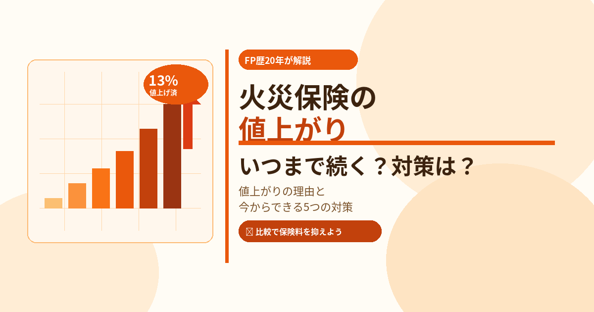 損害保険料率算出機構が保険料の目安となる「参考純率」を13%引き上げ、各保険会社がこれに合わせて保険料を改定しました。2014年以降で5回目の値上げで、引き上げ幅は過去最大です。地域・建物構造・築年数によって値上げ幅は異なり、場合によっては20〜30%以上値上がりしているケースもあります。