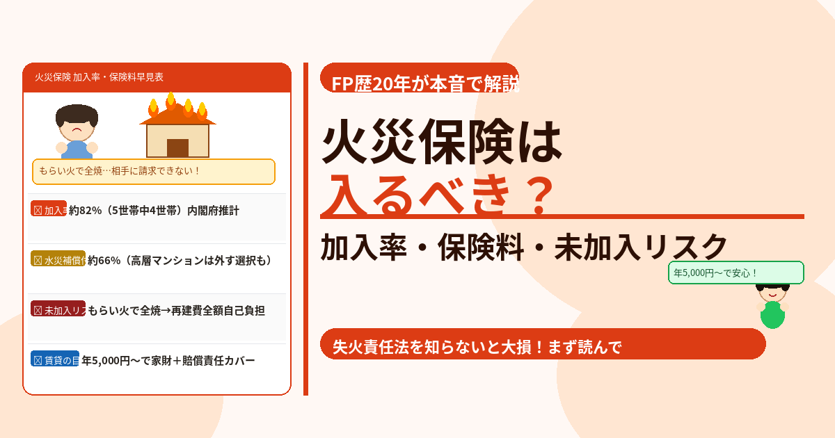 この記事では、保険相談2万時間のしんりゅうが「入るべき理由」「加入率の実態」「賃貸・持ち家別の必要性」「年間保険料の目安」を本音で解説します。