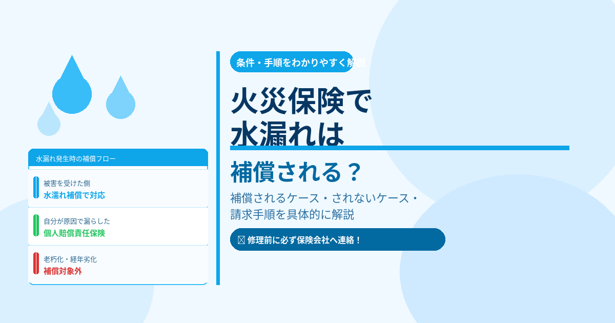 この記事では、水漏れと火災保険の関係を状況別にわかりやすく解説します。