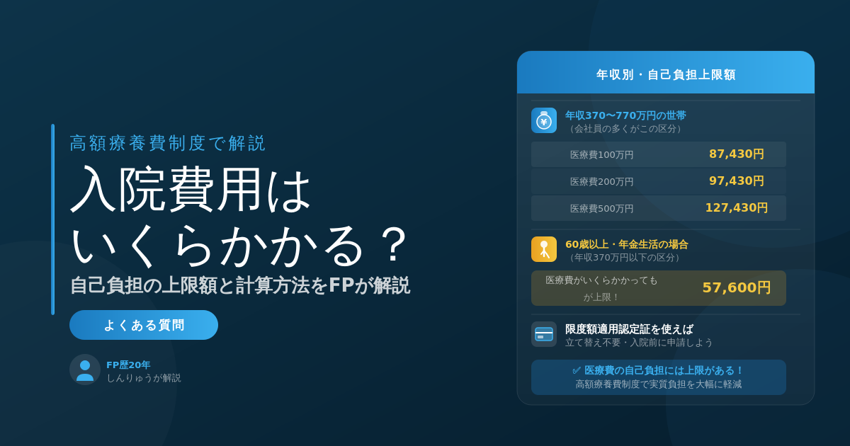 この記事では、入院費用の実際の金額を高額療養費制度の仕組みと計算式を使ってわかりやすく解説します。