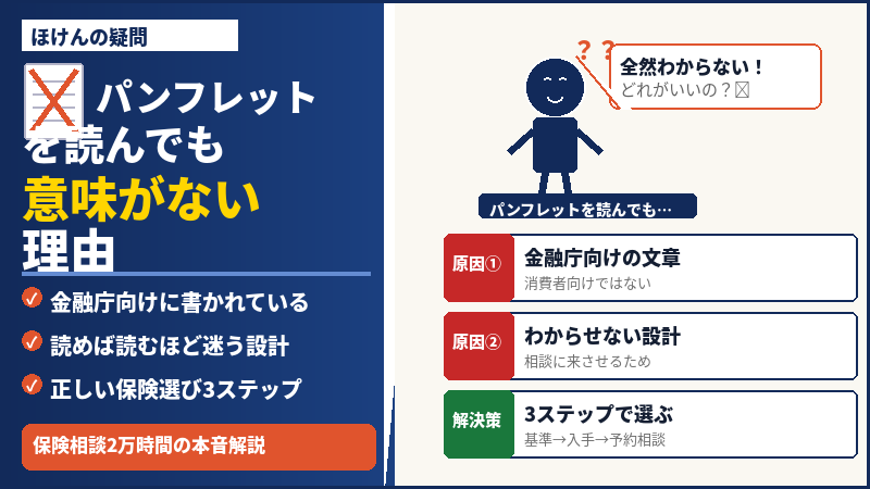 これはあなたの理解力の問題ではありません。保険のパンフレットは、そもそも消費者に向けて作られていないからです。